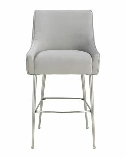 TOV Beatrix Pleated Grey Velvet Counter Stool Home Dining Chairs & Stools
