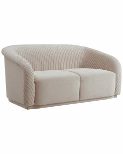 TOV Yara Pleated Beige Velvet Loveseat Home Sofas & Sectionals