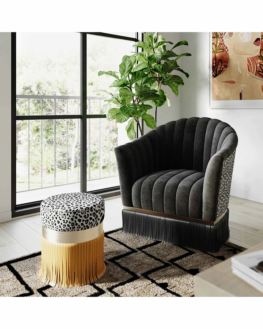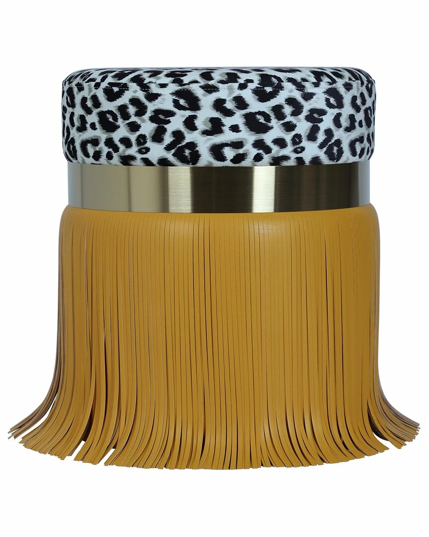 - Leave it to the Ajani ottoman to dazzle your space and your mind with its extravagance, yet effortless coolness. The leopard printed seat with plush foam is a treat for the eye and bum alike. The fringe detail surrounding the velvet base adds a touch of retro-chic. Everything about this ottoman exudes individuality and it cannot wait to enhance your space!