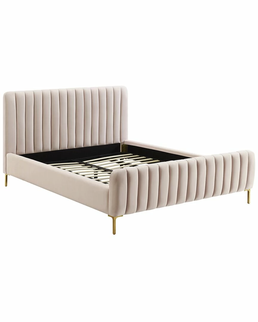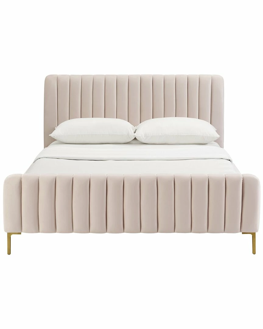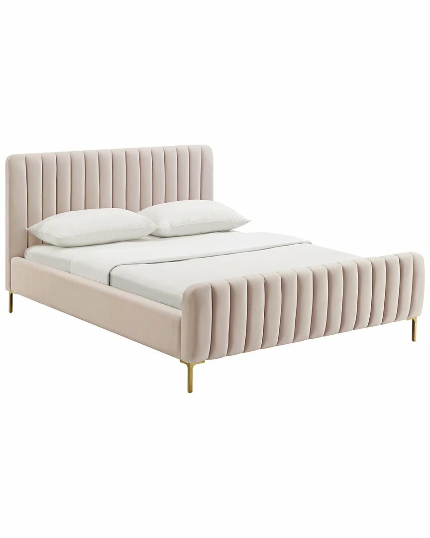 - We can’t guarantee your dreams will come true, but at leastthey can help you dream in style. The Angela bed features glam design, channel tufting and gold legs that pop against the sumptuous velvet upholstery. Available in full, queen, or king and multiple color options.