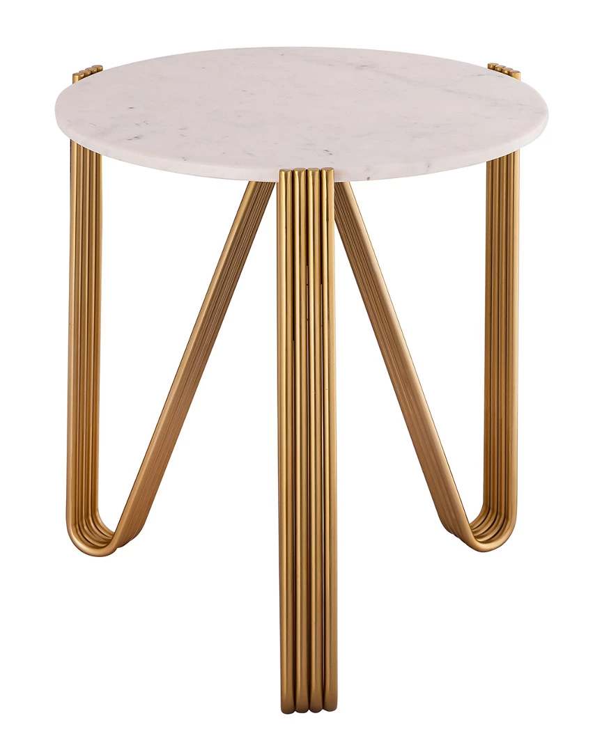 - Design details: Introducing the Aya side table, a fabulous blend of classic design and understated glamour from Inspire Me! Home Decor and TOV. Handcrafted with a white marble tabletop and supported on curved, iron legs in satin gold, this accent table will enhance any living space