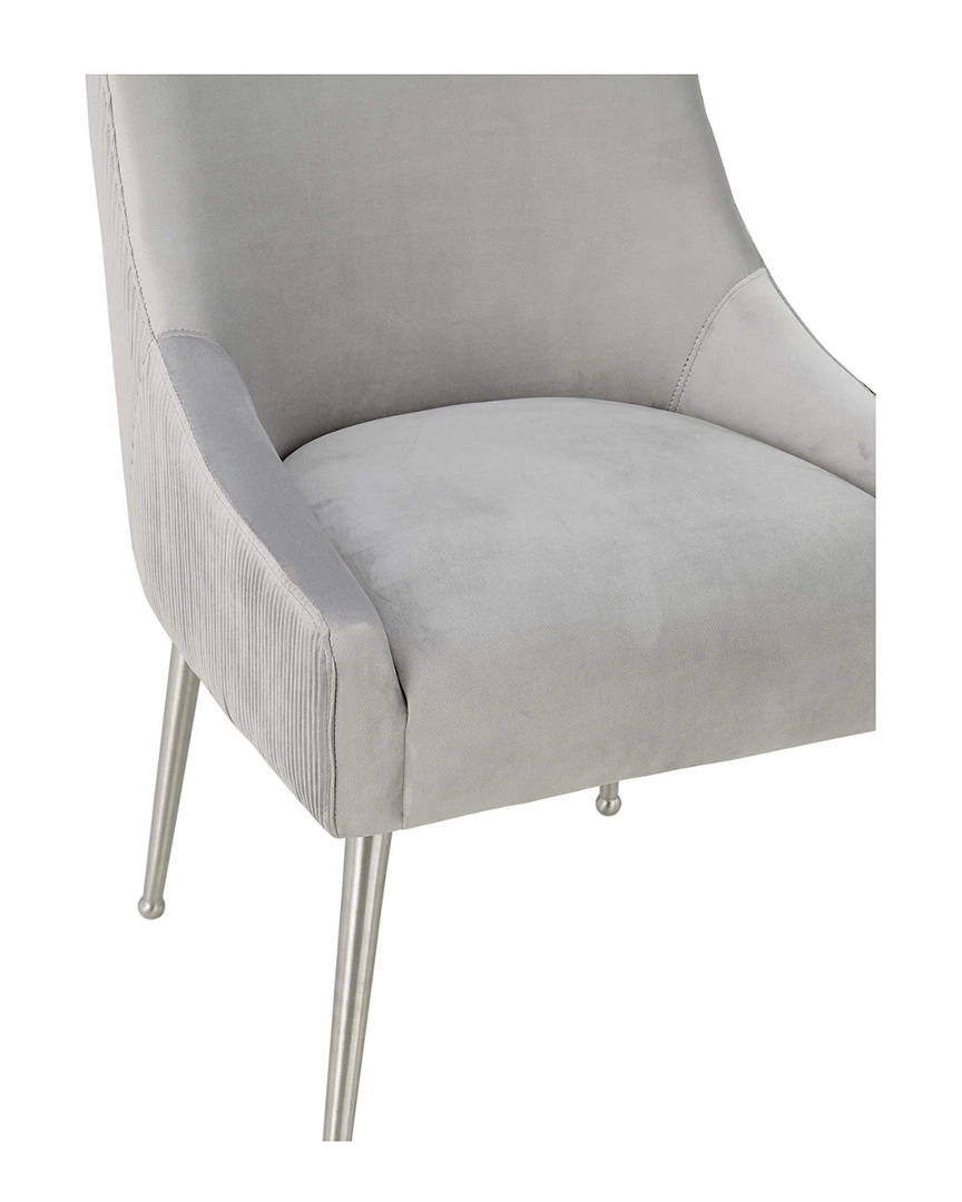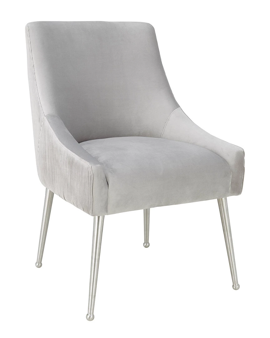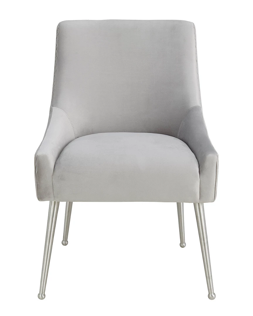 - Design details: Sit pretty in this sumptuous yet durable velvet chair. The Beatrix dazzles as a dining chair or as an accent piece. Available in several colors with fab stainless steel legs and a matching handle on the back. Prop it into any room for a luxe, glamour effect.