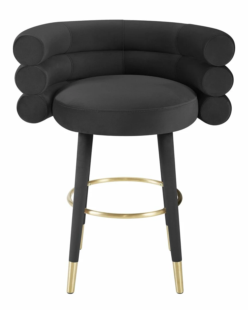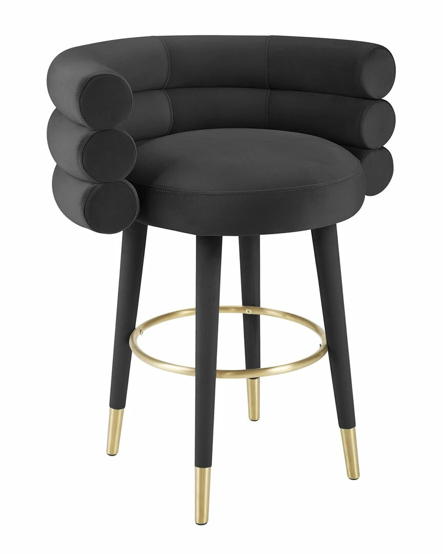 TOV Betty Black Velvet Counter Stool Home Dining Chairs & Stools