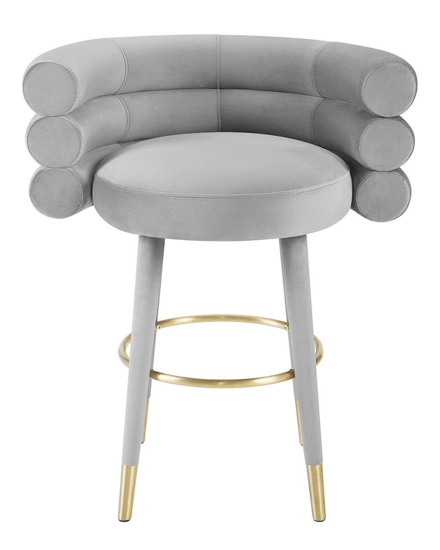 TOV Betty Grey Velvet Counter Stool Home Dining Chairs & Stools