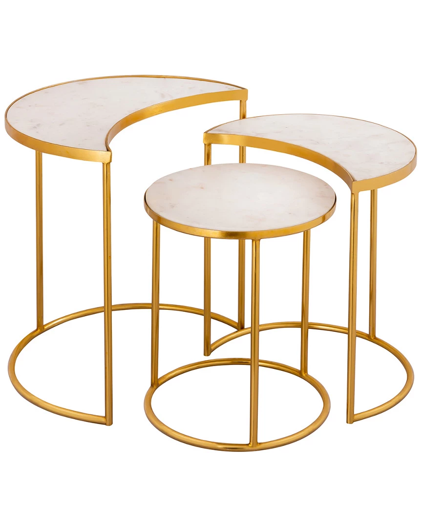 - Design details: Add a touch of elegance to your living space with this modern table set from Inspire Me! Home Decor and TOV. These handmade tables feature a beautiful gold finish, open framework and genuine marble tops. They conveniently nest into one another, providing extra surface space as you need it.