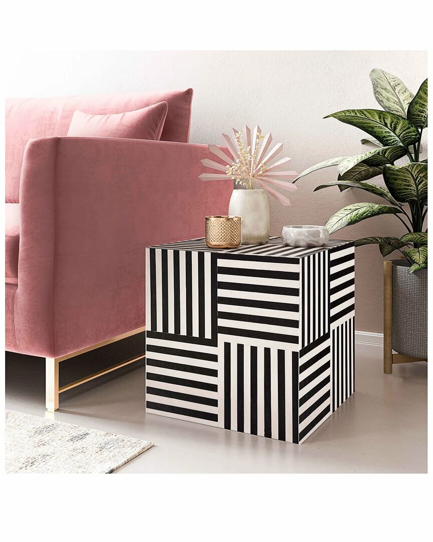 - Push some boundaries with the hand-laid Cube two-tone side table. This little cutie will add that artistic element to any space with it’s geometric stripes. Life’s too short to be boring.