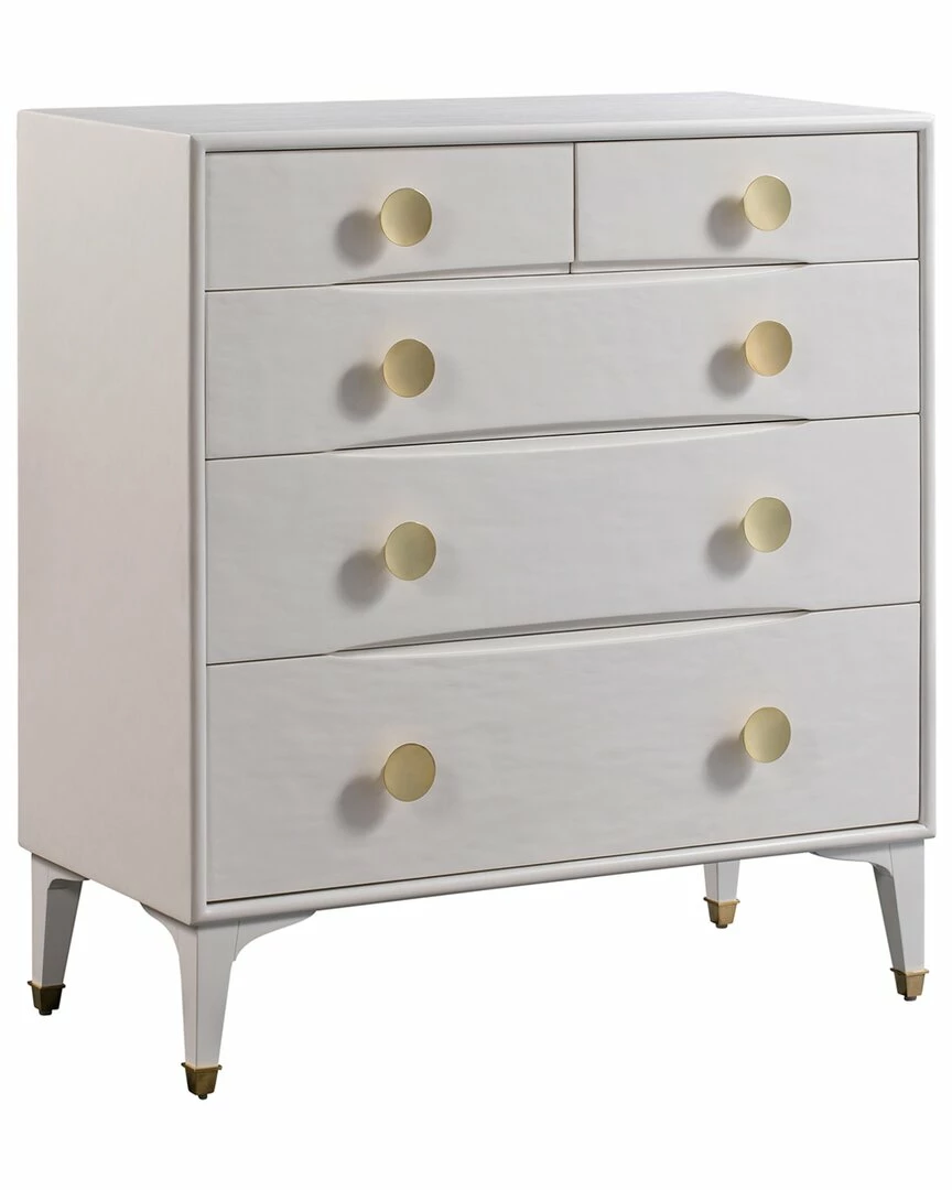 - Born to make a statement, the Divine collection offers glam design that’ll take your space to the next level. The brass handles and leg-tips pop in contrast to the white finish and the undulating surface provides texture and added sophistication. Combine the chest with the nightstand for the ultimate look.
