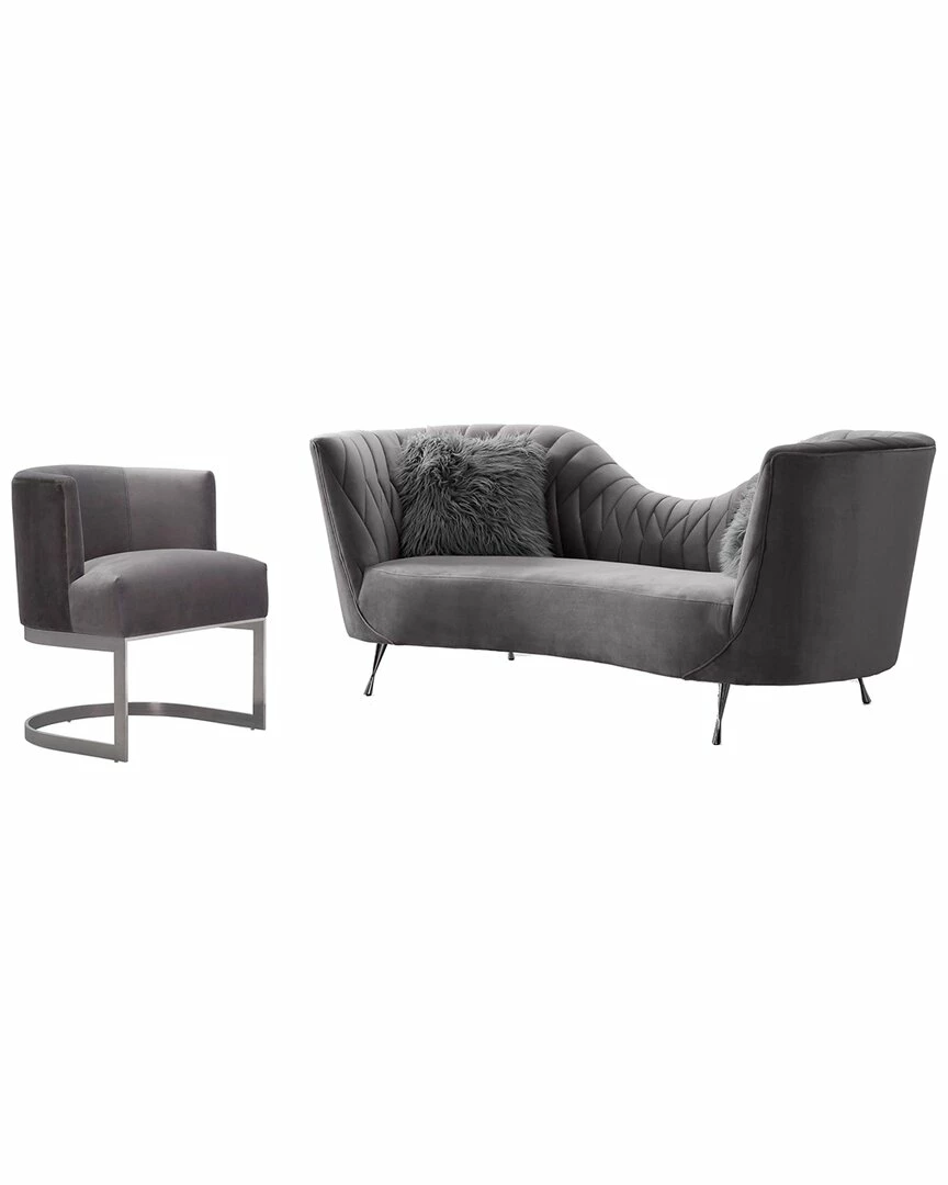 TOV Eva Grey Velvet Sofa And Chair Set Home Sofas & Sectionals