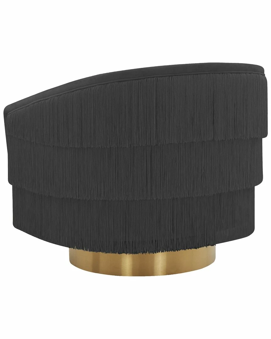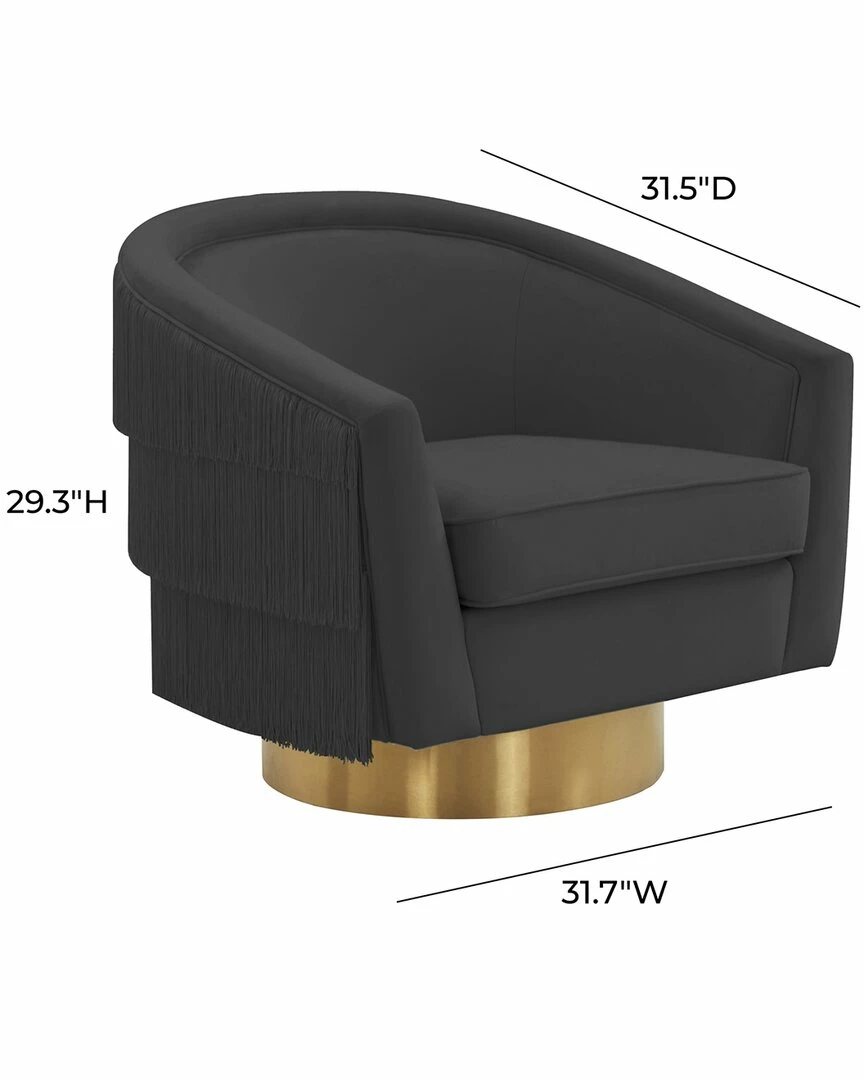 - Get ready to sink into a world of comfort and push the limit of fab design. Upholstered in sumptuous velvet with piped stitching and tassels galore, the look is completed with its brushed gold base. Available in several colors, the Flapper chair is the perfect piece to enhance any space.