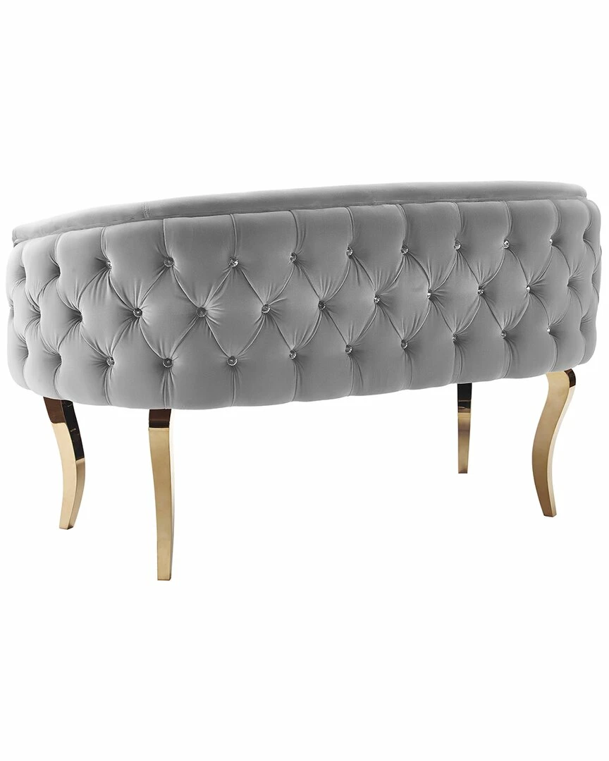 - Our all-glam, no-nonsense Adina loveseat dares to be different. Handmade with an amply crystal tufted back and perched upon tall curved gold stainless steel legs, this comfortable all velvet piece is sure to dazzle in any room.
