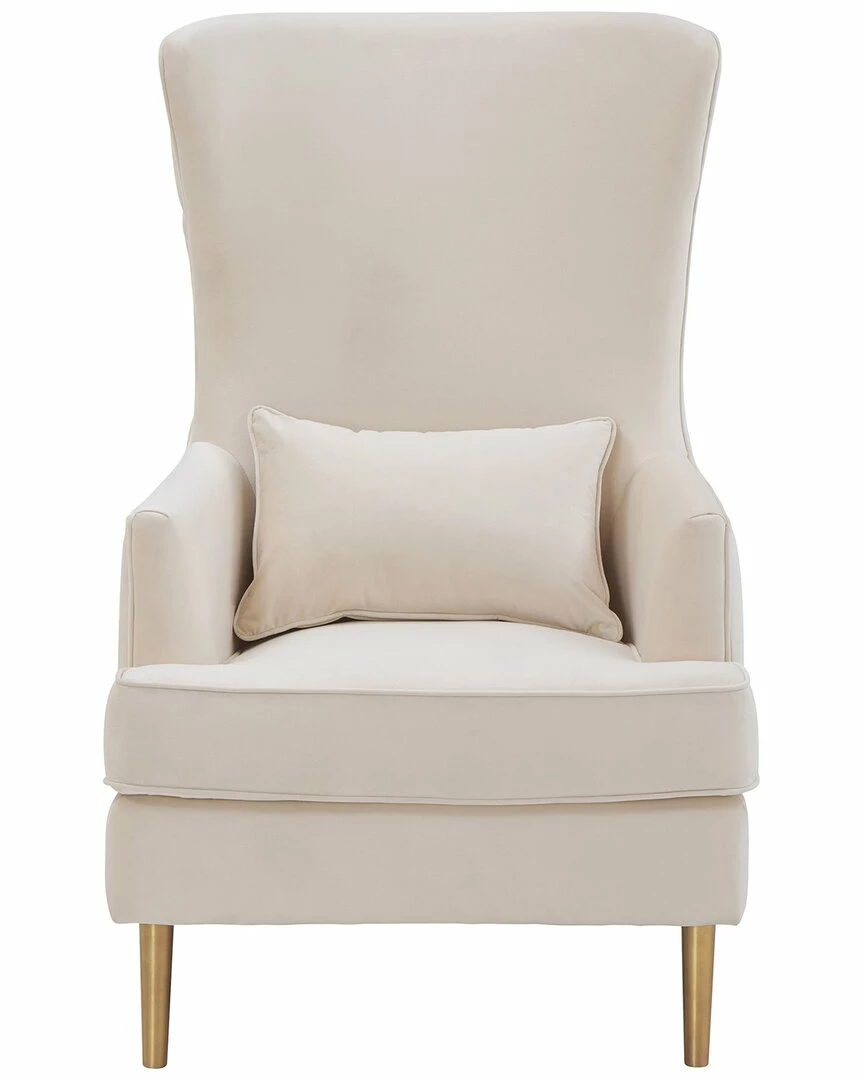 - Boasting a high back, rich upholstery and diamond button tufting, the Alina chair adds flair to any room with an authoritative presence. Designed in collaboration by Inspire Me! Home Decor and TOV, this impressive wingback chair is available in multiple popular colors and complemented by brushed gold legs.