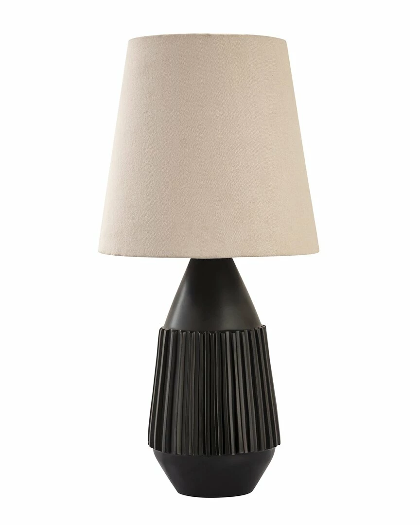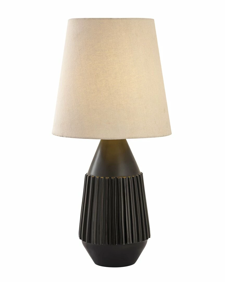 - Design details: The Allyson table lamp is sure to add minimalistic style and interesting texture to any space. Its taupe lamp shade contrasts beautifully with its sculptural black brass base. This versatile piece can complement many decor styles and aesthetics!