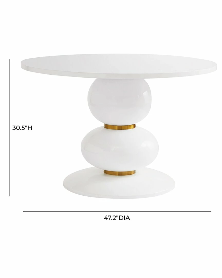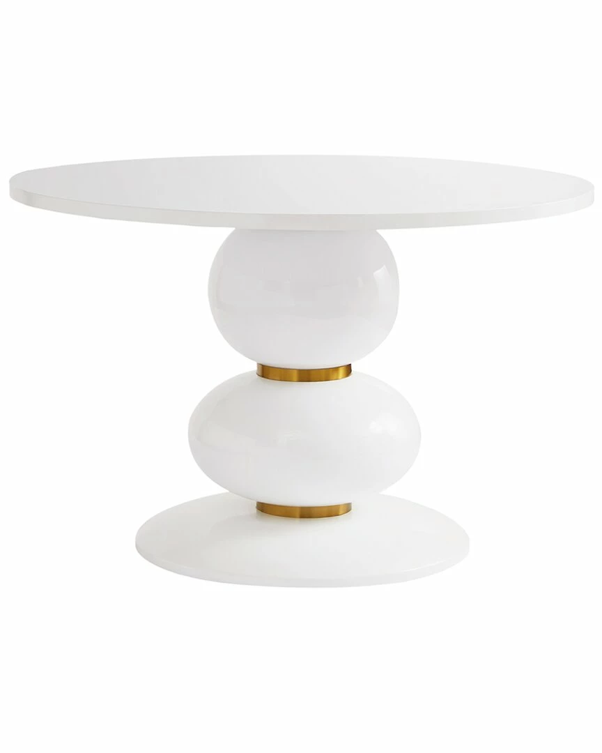 - Add a sculptural touch to your dining experience with the Arianna table – a modern and urban take on the French pedestal-style table. This table’s whimsical nature is balanced by sophisticated gold band accents. This is truly a statement piece that will bring style and dynamism to any space!