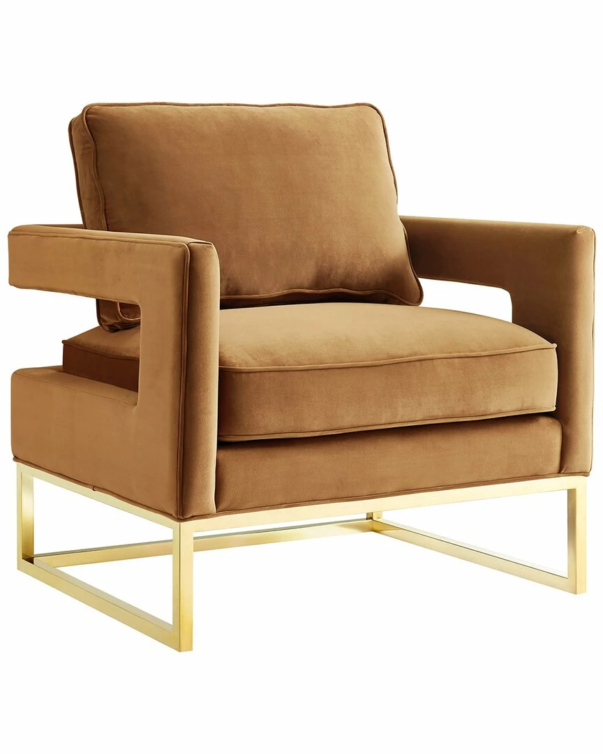 - Inspired by our love for luxe, modern design the Avery chair radiates sophistication and grandeur. With a glossy gold finish and gorgeous curves, this chair is available in several sumptuous upholstery options. The Avery is a must-have for any room.