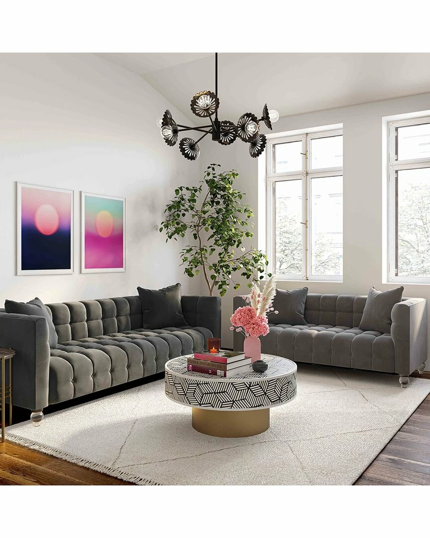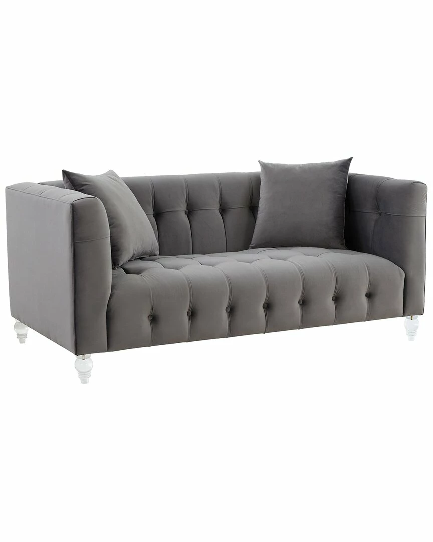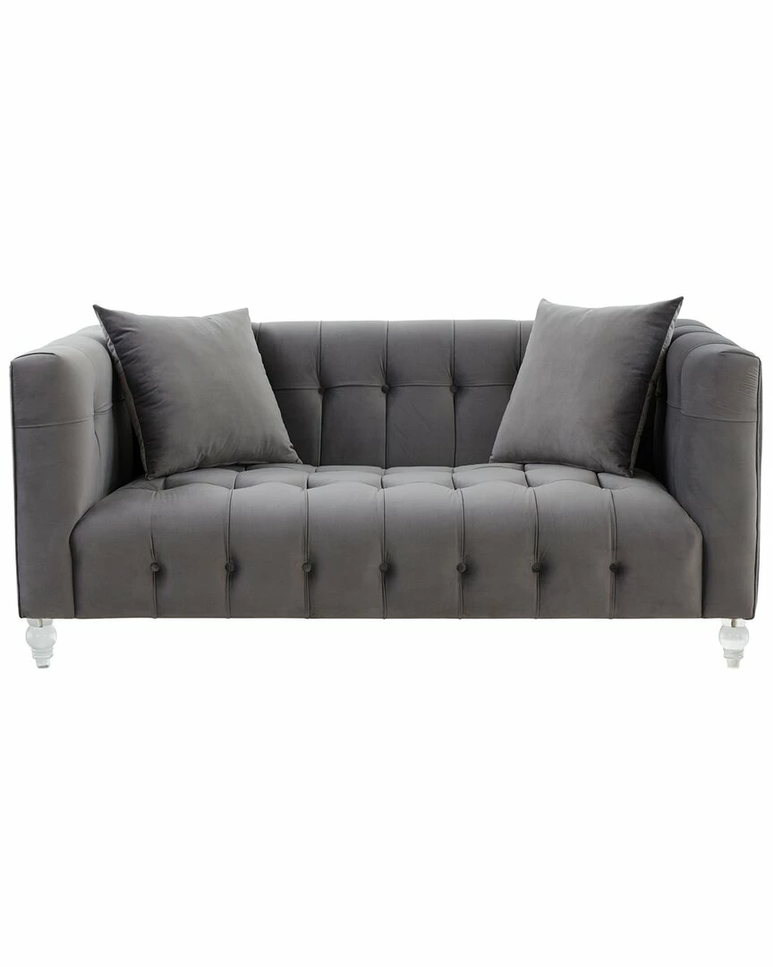 - Our Bea Loveseat is a true beauty. This rich velvet upholstered piece is designed with a deep seat, luxe tufting, and Lucite legs. Bea adds style and color to any room.