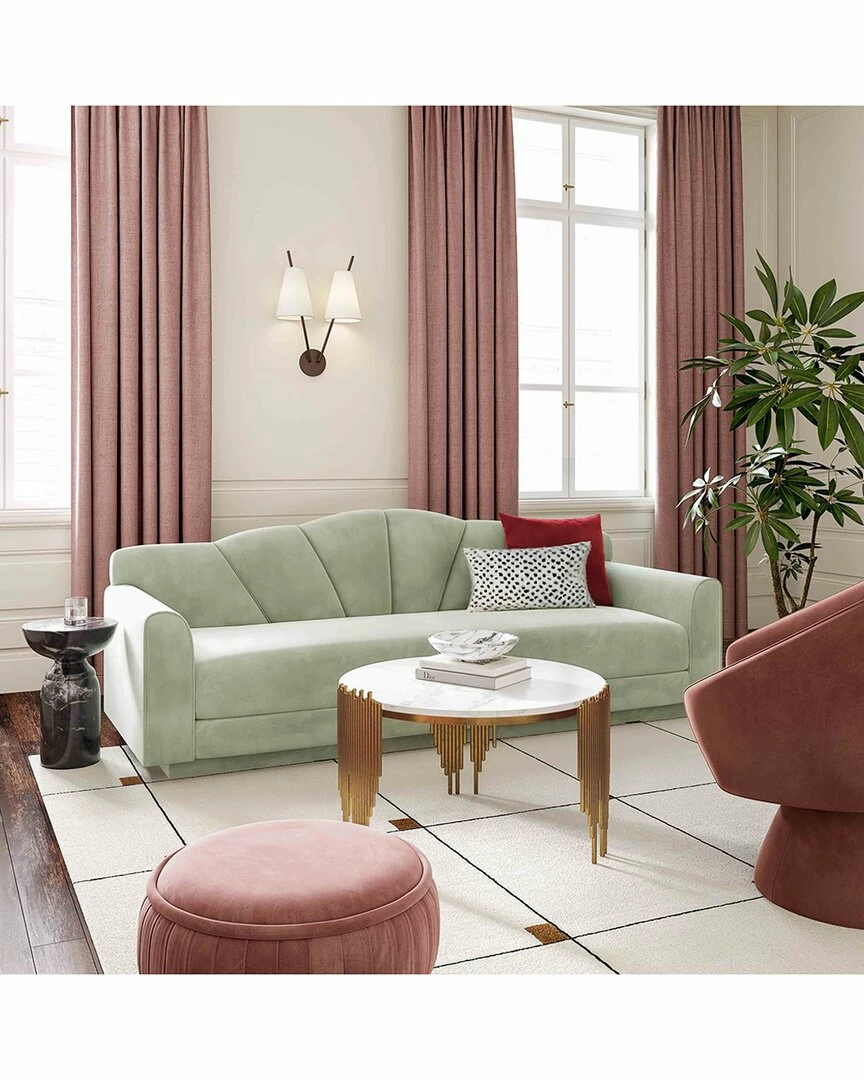 - The Bianca Sofa adds a touch of decorous elegance and sprightly playfulness to your space and everyday life. Sumptuous velvet fabric, plush fiber-wrapped foam padding, and a sturdy pine frame offer long-lasting comfort and support. Its crown-like cushioned back and modern silhouette offer style and individuality like no other.