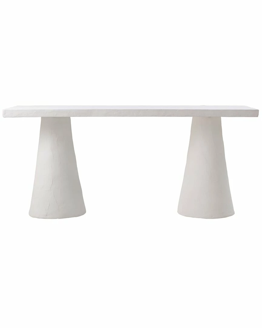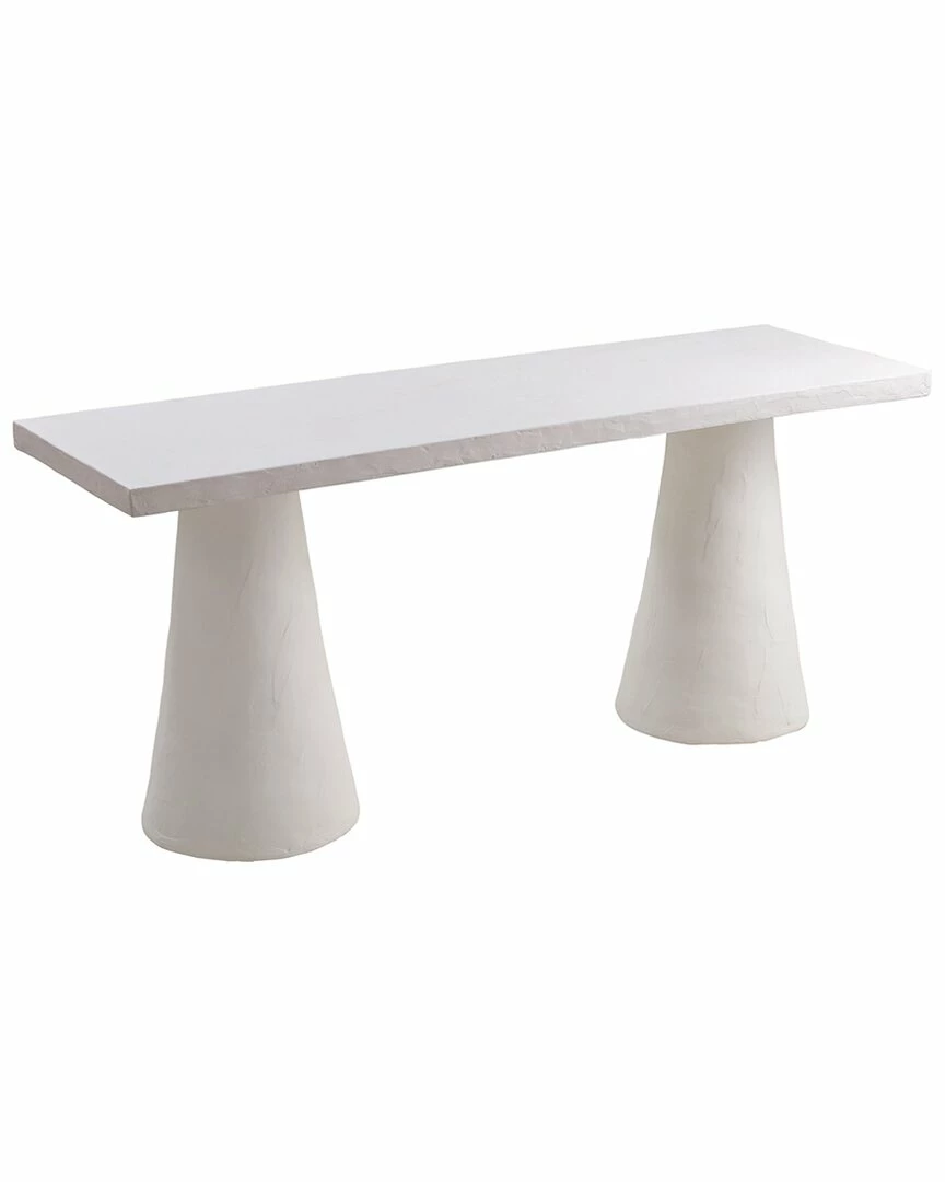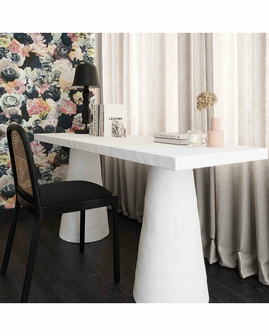 - The Dayana desk is guaranteed to transform your work space through its boldness and minimalism. Masterfully crafted from concrete with a faux plaster finish, it is durable and reinvents antiquity in a modern way. This piece will bring a sense of uniqueness to your space like no other!