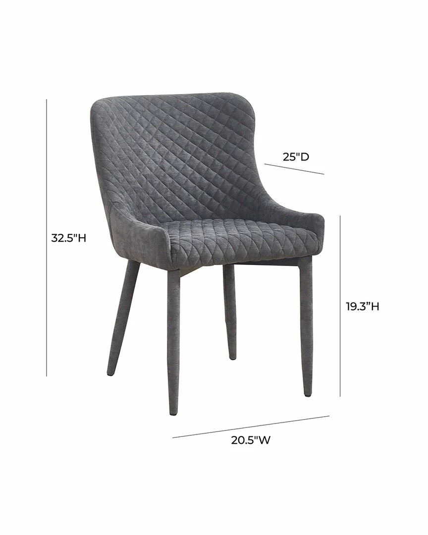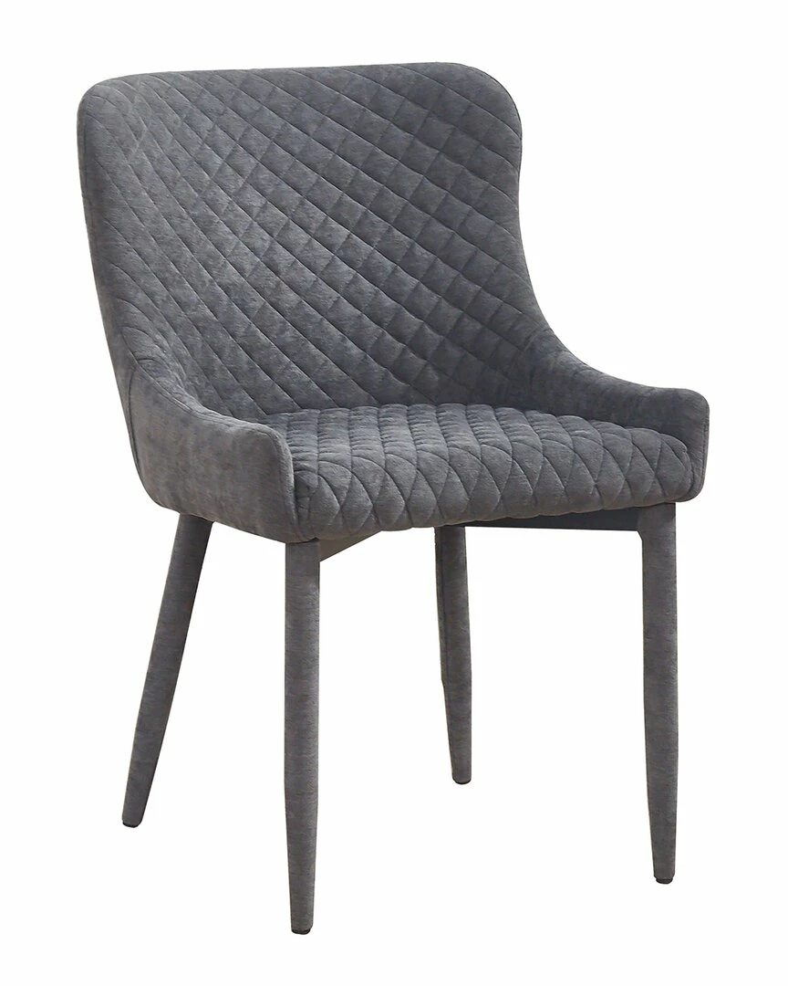 - This beautifully contoured dining chair immediately catches the eye with luxe upholstery in a neutral hue and diamond tufting. Its fully upholstered silhouette and steel frame provide style, comfort and support.