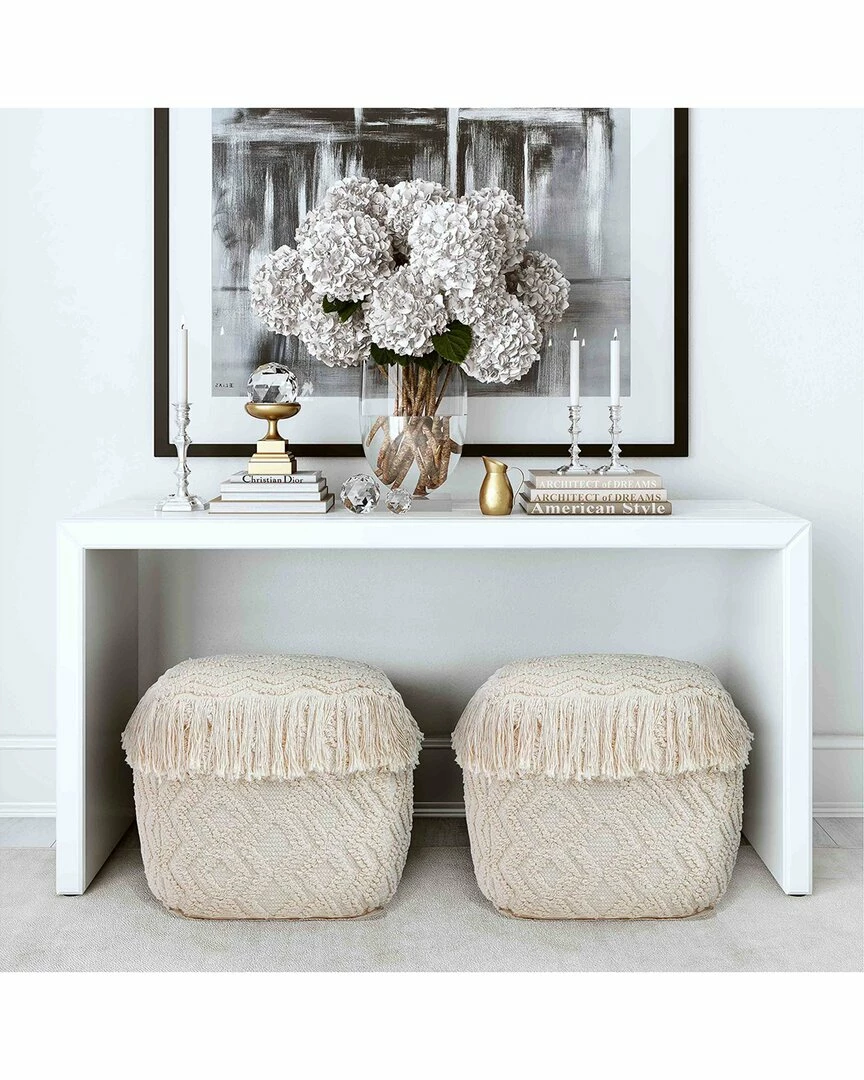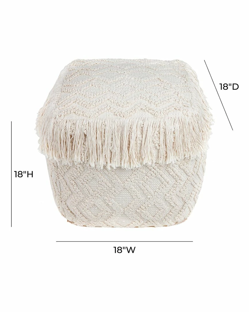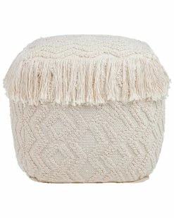 - Crafted from 100% cotton, this versatile pouf features textured geometric designs and tassled edges. Can be used as a traditional seat, ottoman or footrest.