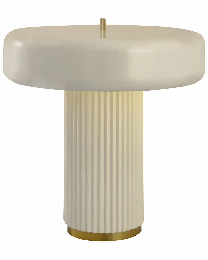 - Design details: The unique shape of the Kamryn Table Lamp will light up your room with its distinct glow. Crafted from iron, this lamp features a dome-like lamp shape and a stunning cylindrical base with brass accents. Available in Cream or Olive and Grey to match your design style.
