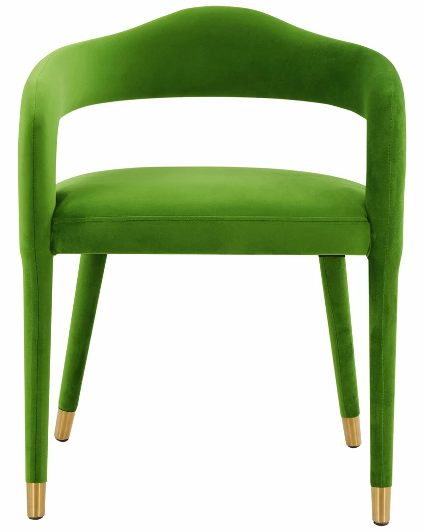 - Your dining room can become a work of art with the Lucia Chair. Featuring a beatifully sleek velvet fabric, tastefully curved back and arms, and elegant gold tipped legs; this chair is sure to elevate any dining experience!