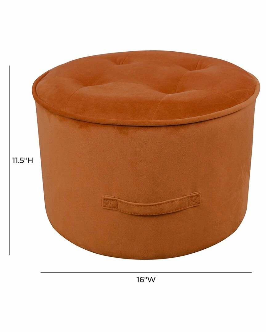 - The Luna is a plush ottoman with button tufting adorning the top. The piped stitching and velvet upholstery lend to a clean look and sleek silhouette. Available in several fun color options.