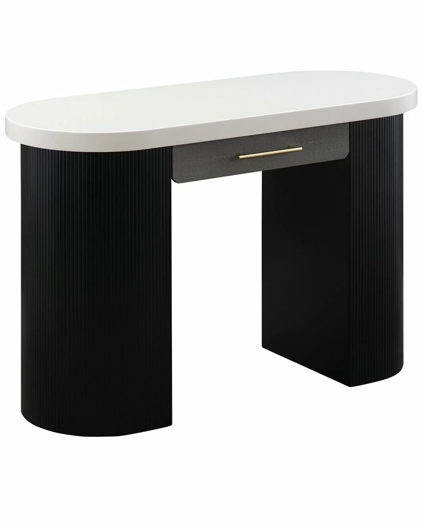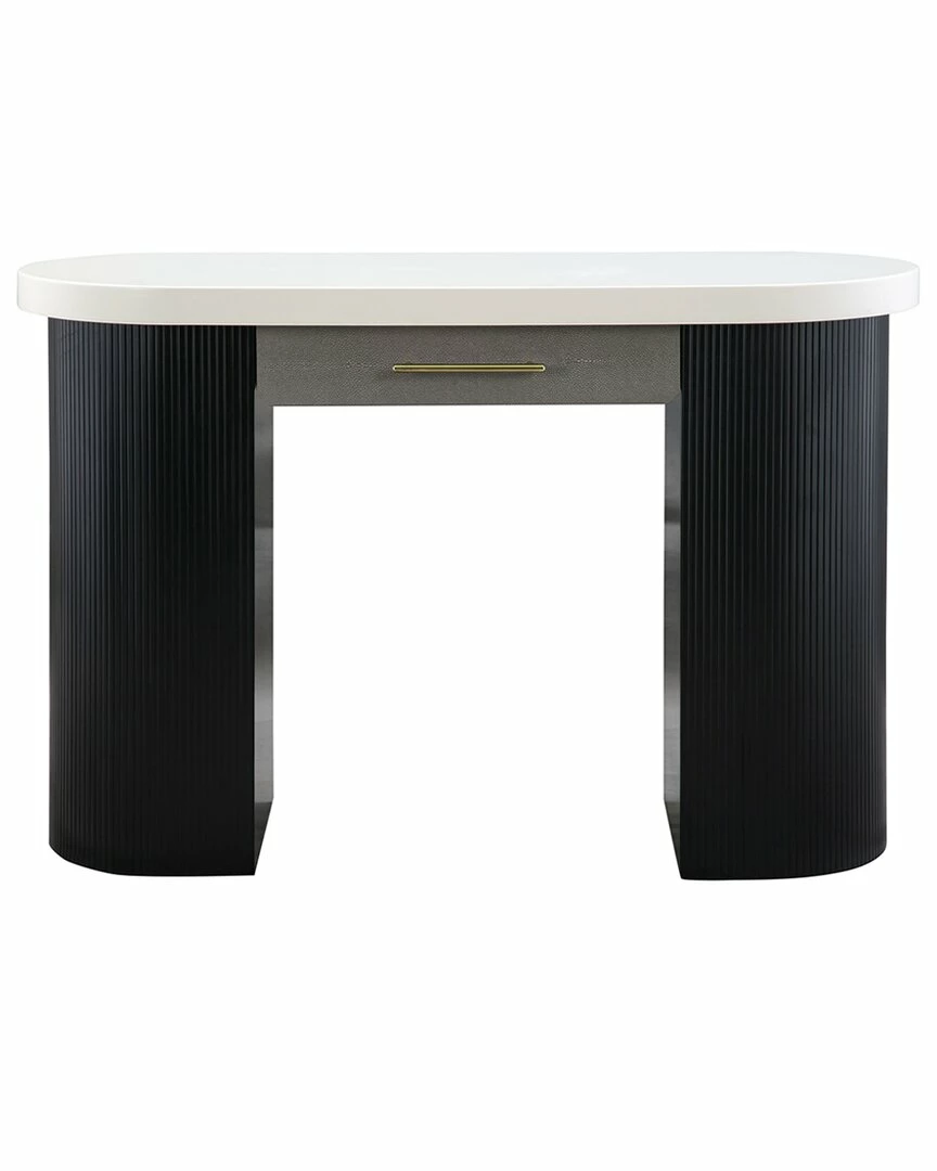 - The Makai Desk/Console is a stylish staple; approachable, yet still elevated and curated. Sturdy wood construction featuring soft close drawers with stunning iron handles; add this piece to your space for a modern classy vibe.