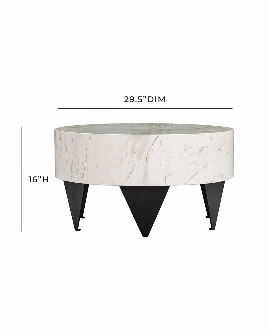 - The unique Mimi Table is perched on V-shaped black iron legs with a swirling white marble surface. This coffee table will no doubt deliver a compelling balance of refinement and eccentricity to your living room!