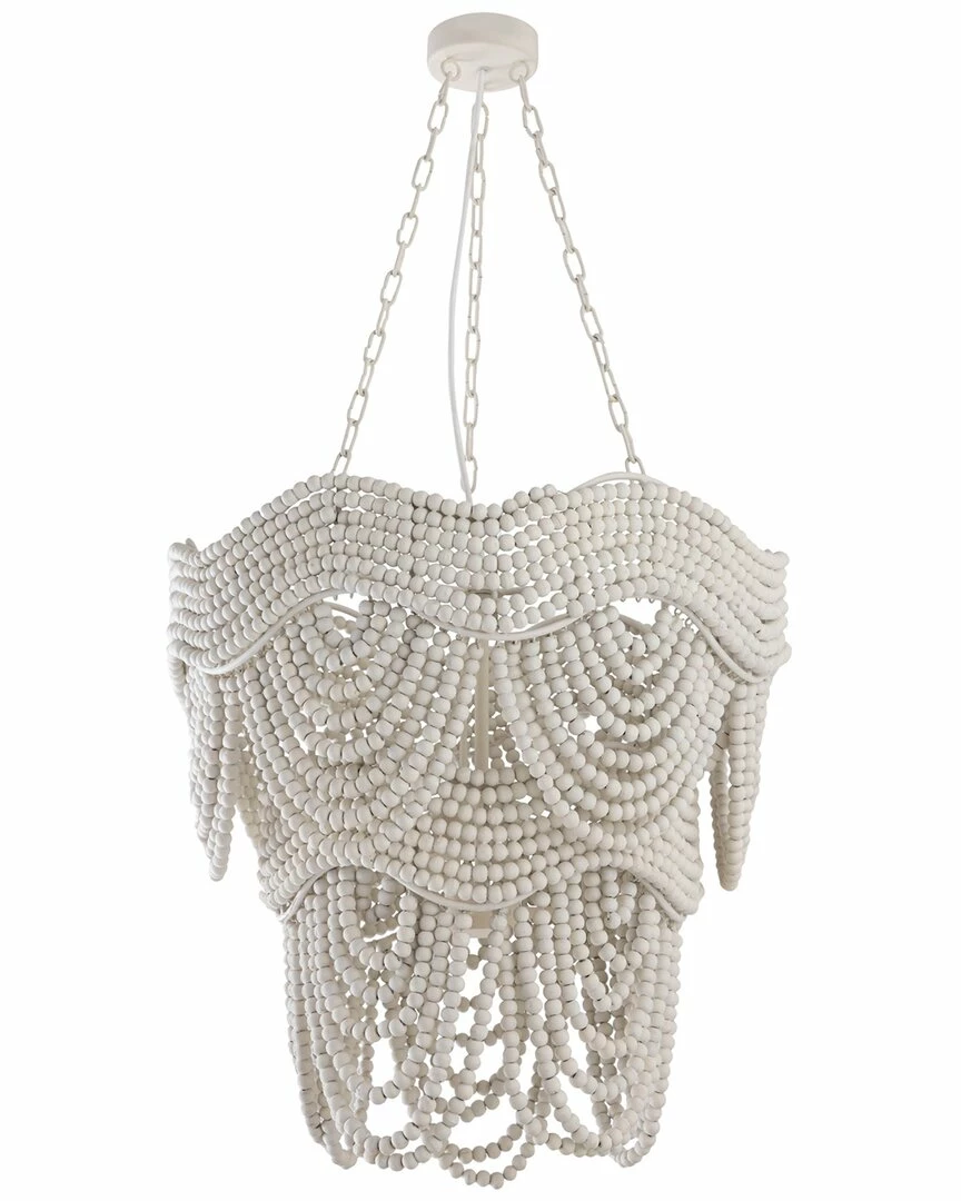 - Design details: Dress your room with this bohemian take on the classic chandelier. Crafted from wood and iron, it features wrapping and layering details with beautifully cascading rows of beads, available in Ivory and Black color options.