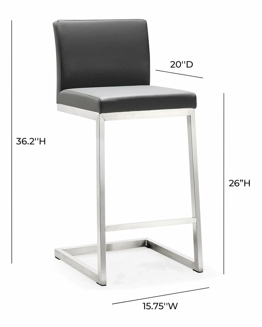 - Furnish your kitchen or bar area in contemporary style with the Parma counter stool from TOV. The solid stainless steel frame provides a sturdy base, while the plush seat and footrest ensure maximum comfort. The combination of angles and gentle curves gives this stool an eye-catching appearance, while the neutral color allows it to match well with any decor.