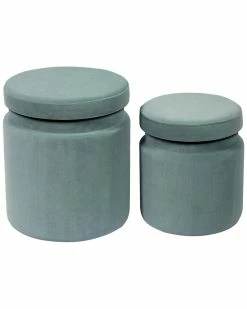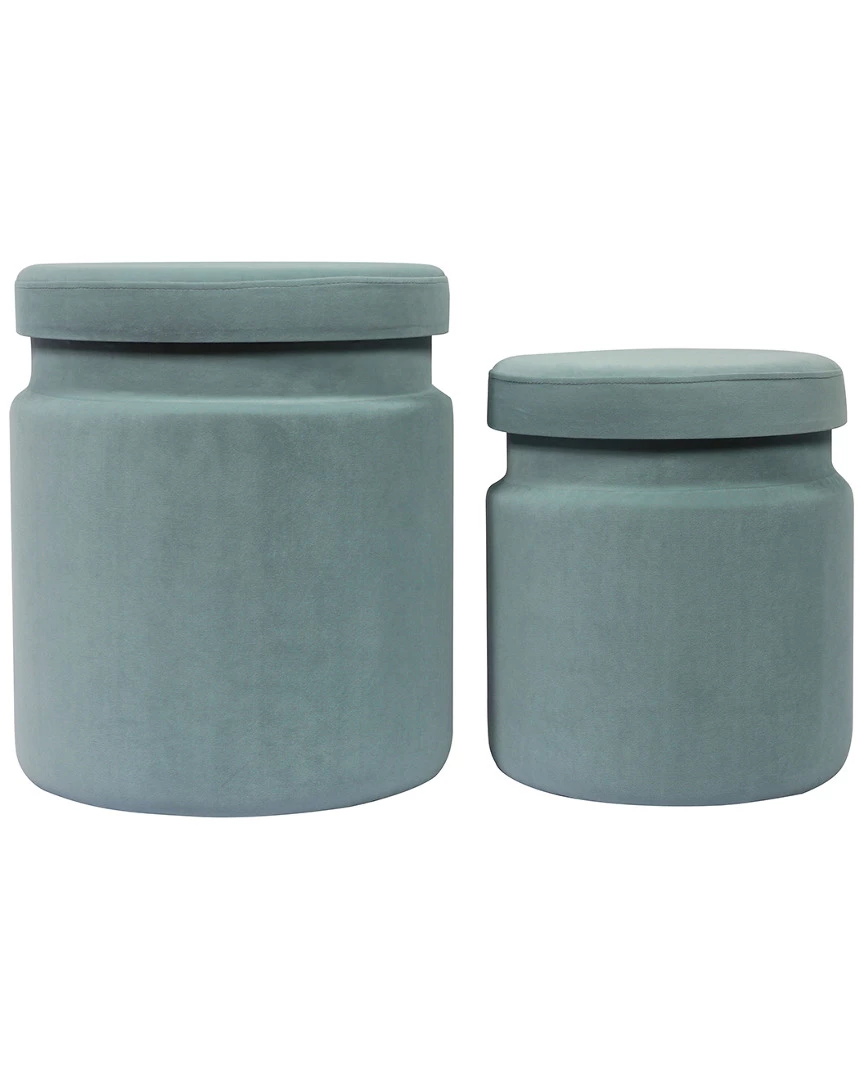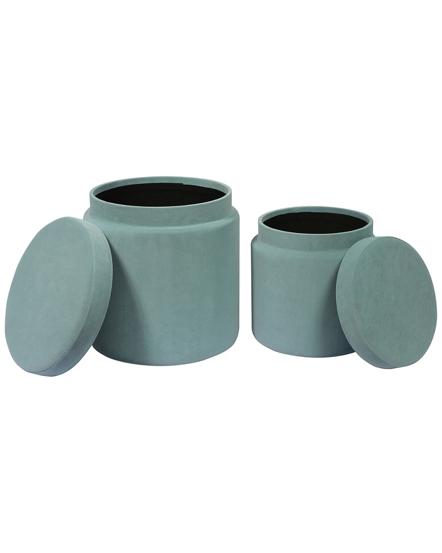 TOV Furniture Set Of 2 Sea Blue Storage Ottomans Home Ottomans & Poufs