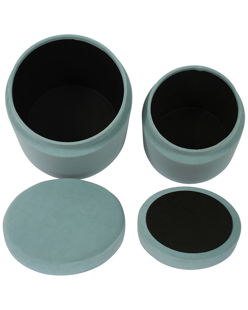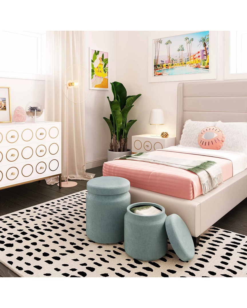 - Design details: Add a burst of functional style to your space with the Kris storage ottoman set. It’s playful color options, plush velvet upholstery and varied heights allow it to complement any decor.
