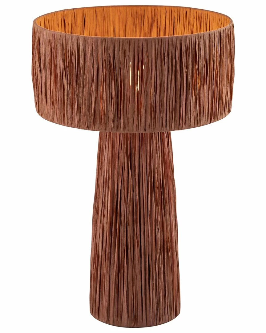 - Design details: She’ll be your favorite piece in your home, we promise! The Shelby Raffia Table Lamp is the perfect accessory to your safari chic vibe. Crafted from raffia and iron and available in brick, black and natural to suit your color scheme.