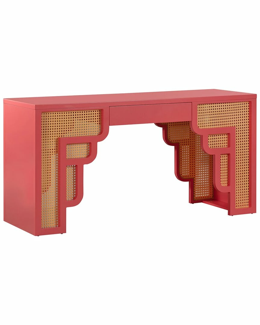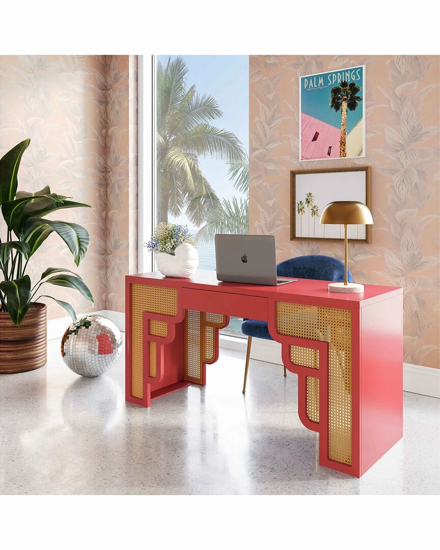- Inspired by the Art Moderne style, the Suzie Desk alludes to Palm Springs art-deco design through its bold colors and curvaceous form. This wooden desk features a soft close drawer for practicality; while its rounded edges and woven rattan details add a playful twist. The Suzie will cement itself as the perfect balance between contemporary living with a touch of glamour in your space!