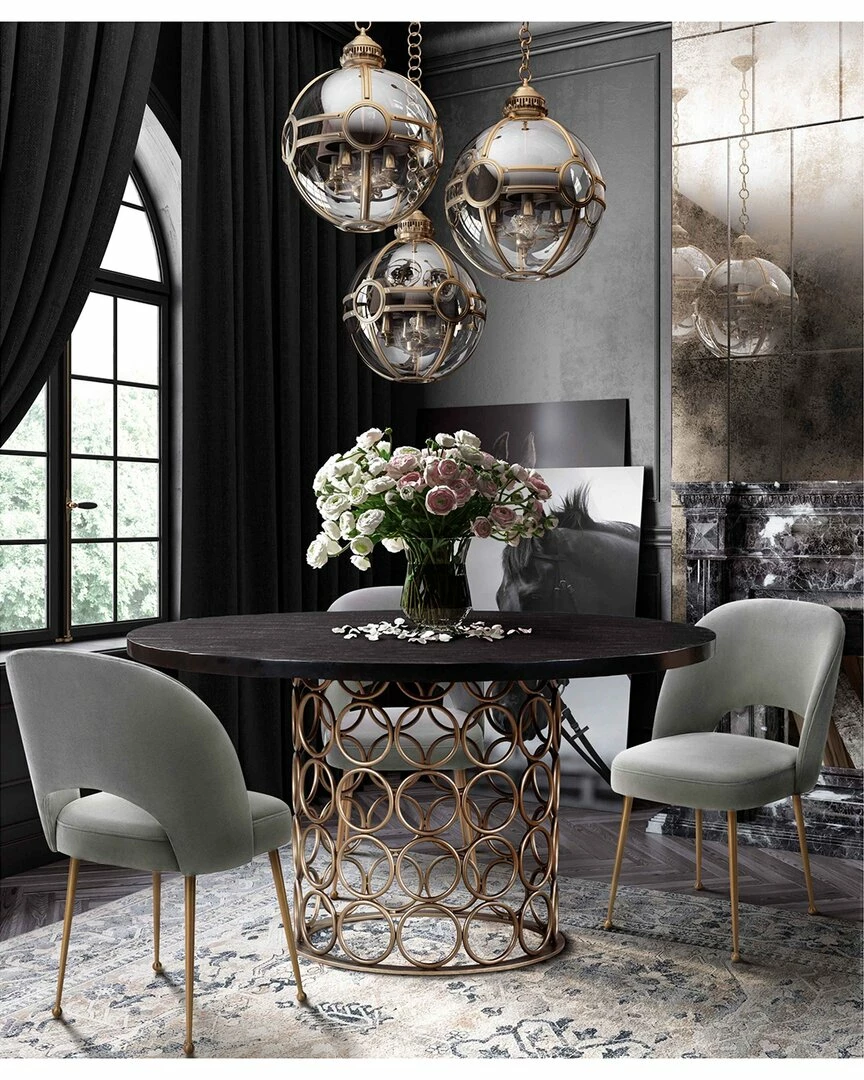 - The Swell dining chair offers the perfect blend of Mid Century Modern and Hollywood Glam. With sumptuous velvet upholstery and gold antenna shaped steel legs this chair is a definite winner and is versatile to match any decor. Available in several color options and pairs exceptionally well with one of our complimenting dining tables (shown).