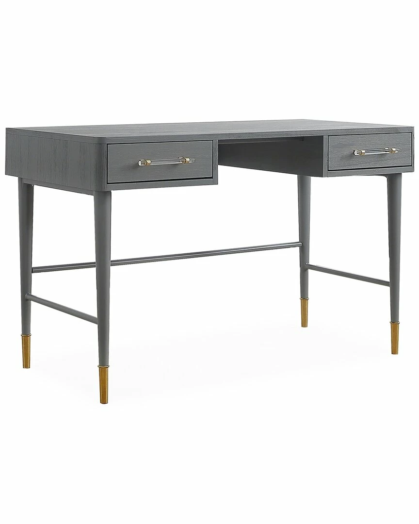 - You gotta work, so may as well do it in glamorous style. The Talia desk from Inspire Me Home Decor and TOV, allows you to do just that. Boasting gold tipped tapered legs, a grey pine veneer finish and clear acrylic handles to add a unique pop, it’ll keep your space organized and fabulous.
