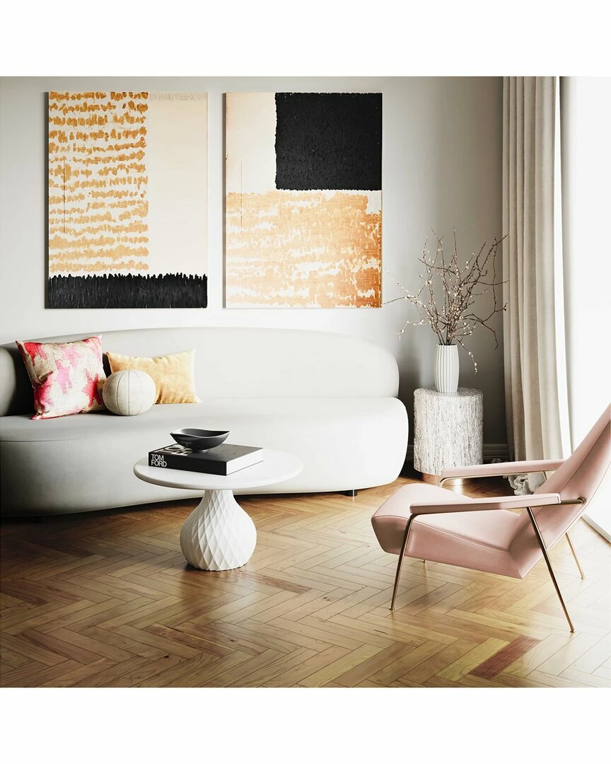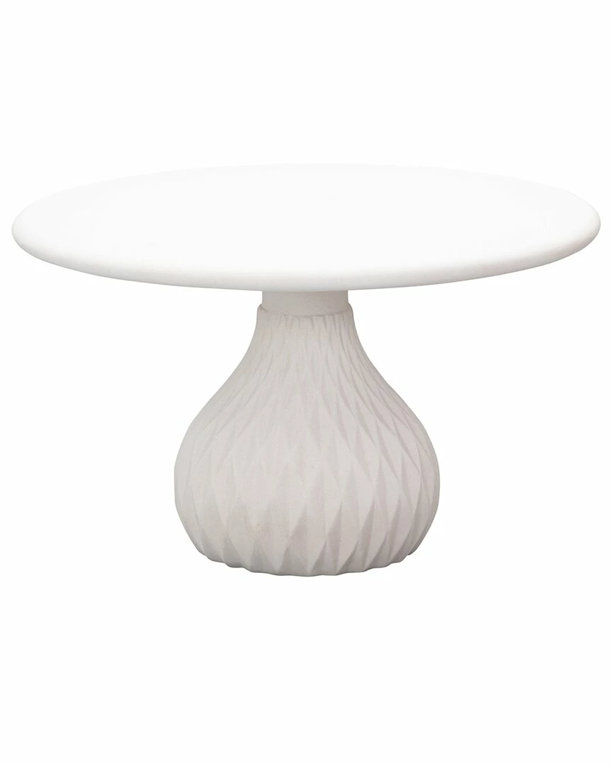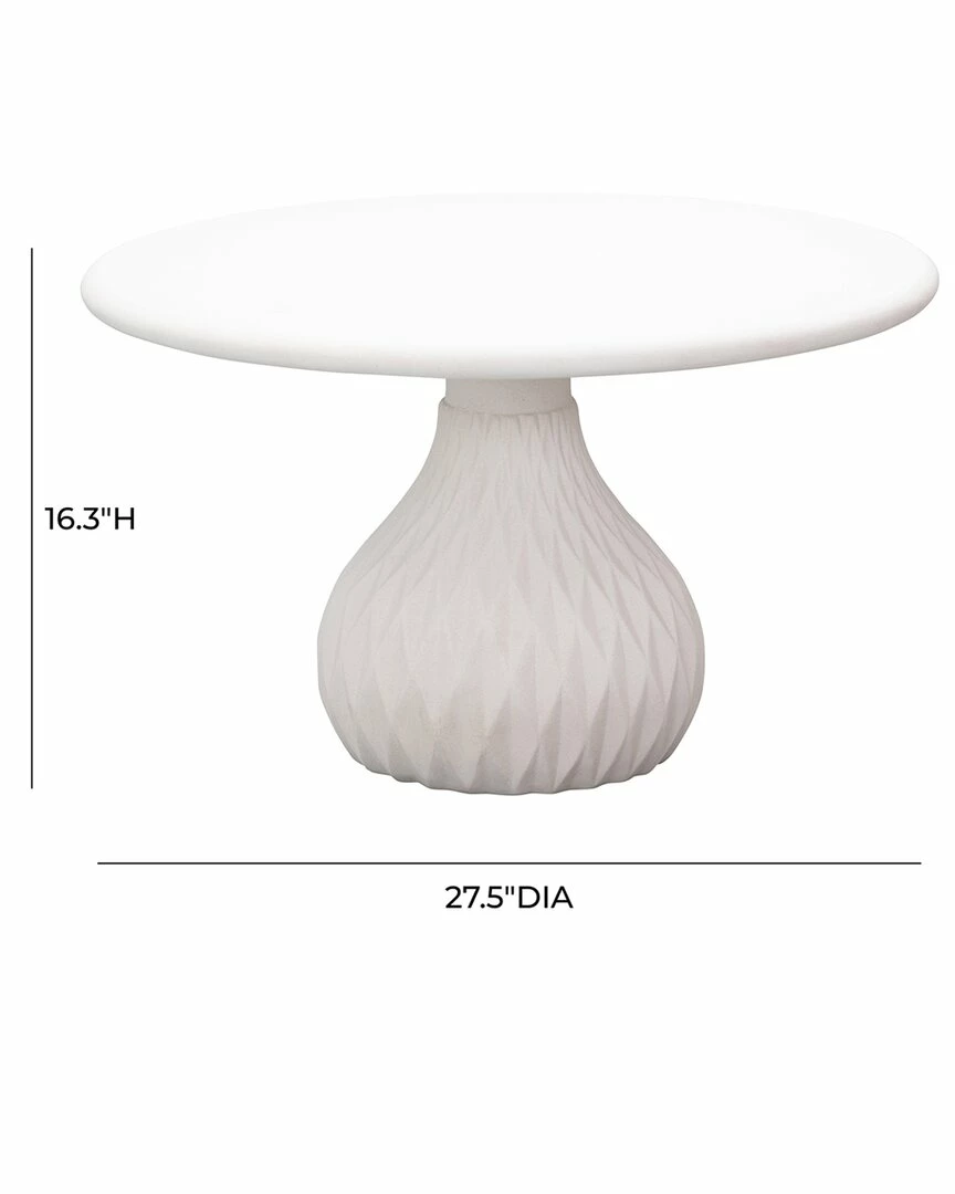 - Stunning indoors or outdoors, the Tulum table brings glam style to your living experience. Masterfully crafted from concrete, this round coffee table measures 27.5 inches in diameter and boasts a gorgeous diamond-pattern design on its pear-shaped pedestal base.