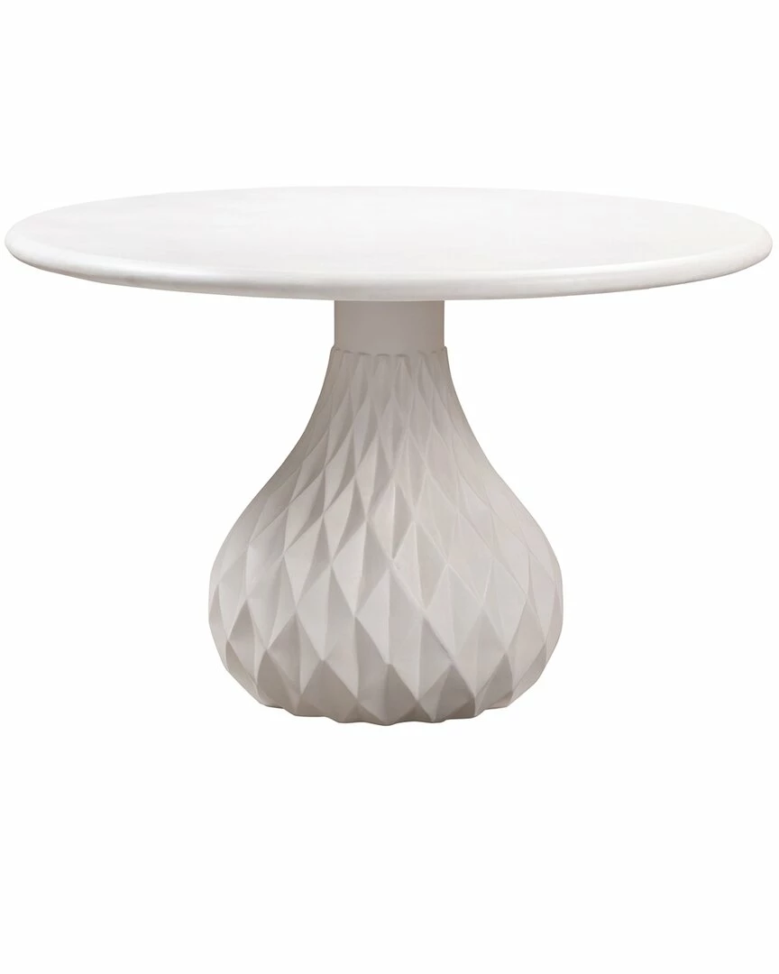 - Stunning indoors or outdoors, the Tulum table brings glam style to your dining experience. Masterfully crafted from concrete, this round dining table measures 47 inches in diameter and boasts a gorgeous diamond-pattern design on its pear-shaped pedestal base.