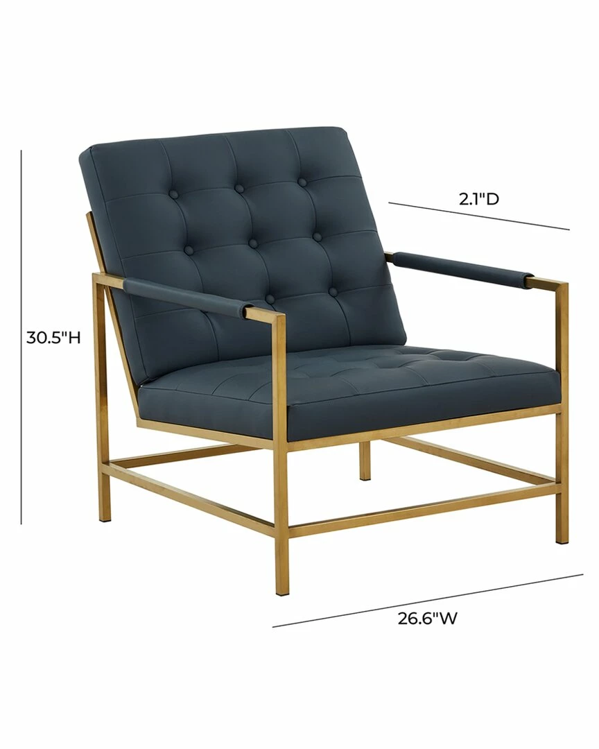 - The perfect chair to do some voguish lounging, meet the Van Accent Chair. Featuring tufted stunning vegan leather seat and back, perched on top of a polished gold stainless steel frame, this chair is perfectly comfortable and stately. Available in multiple color and fabric options.
