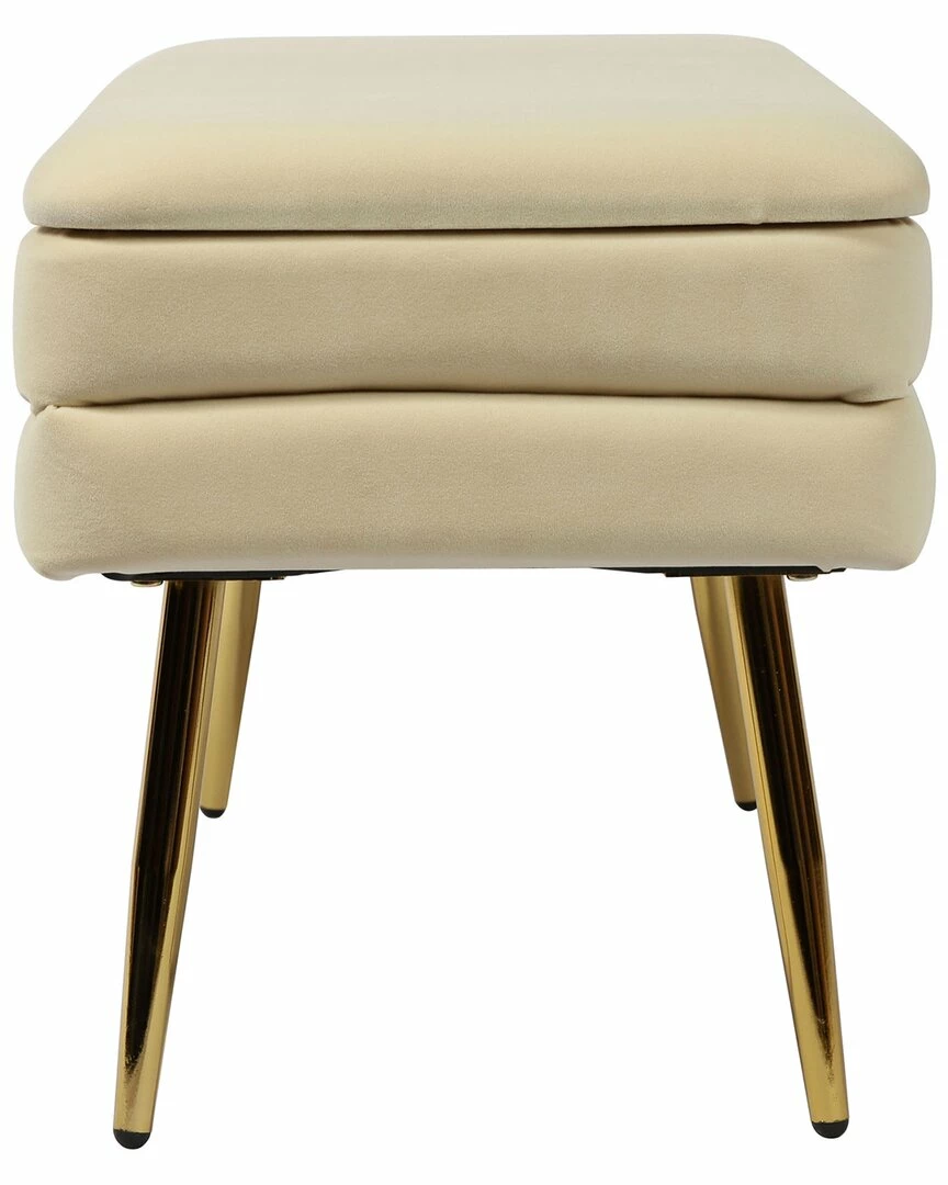 - Add a touch of sophistication with the functional and ultra chic Ziva bench. Featuring channel tufting, plush velvet upholstery, polished gold legs and ample storage space to keep your room looking neat and stylish. Available in several exciting color options.