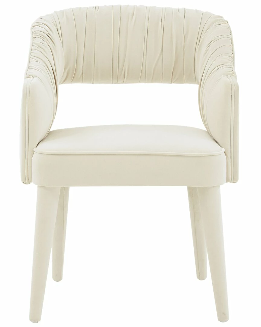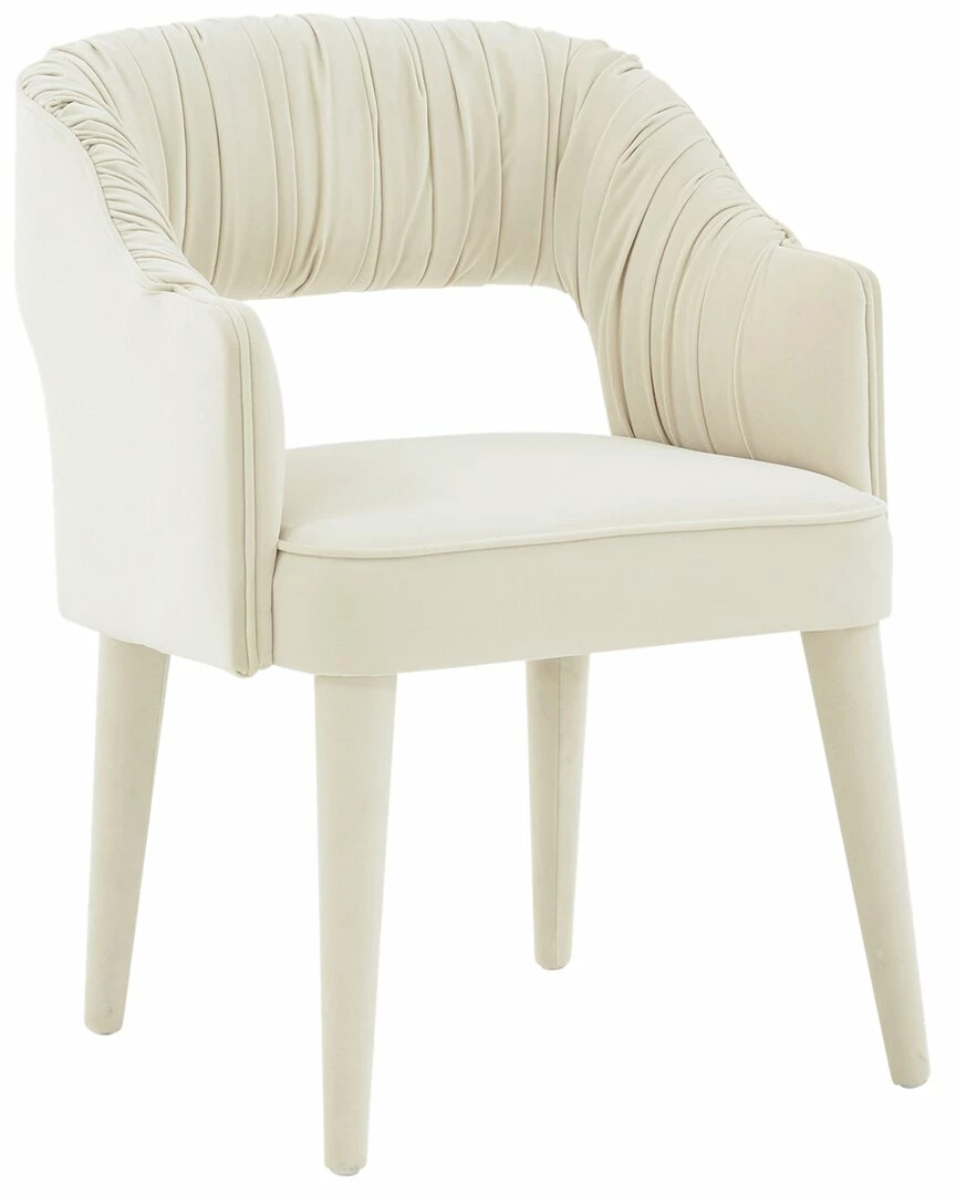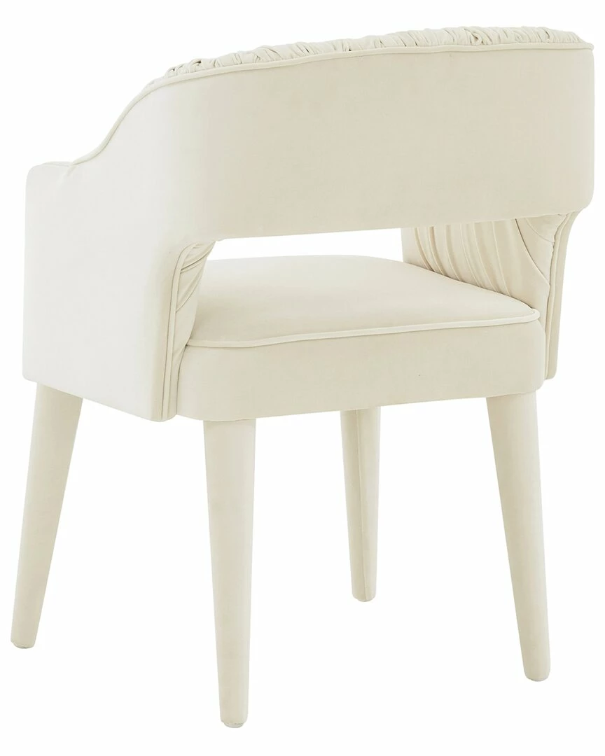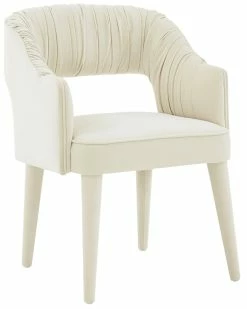 - The Zora chair takes luxurious dining to a whole new level. The chair features a durable birch frame upholstered in sumptuous velvet fabric with gathered folds. It offers supreme comfort with high arms and a plush foam seat, while its lavish design adds texture and style to your dining experience.