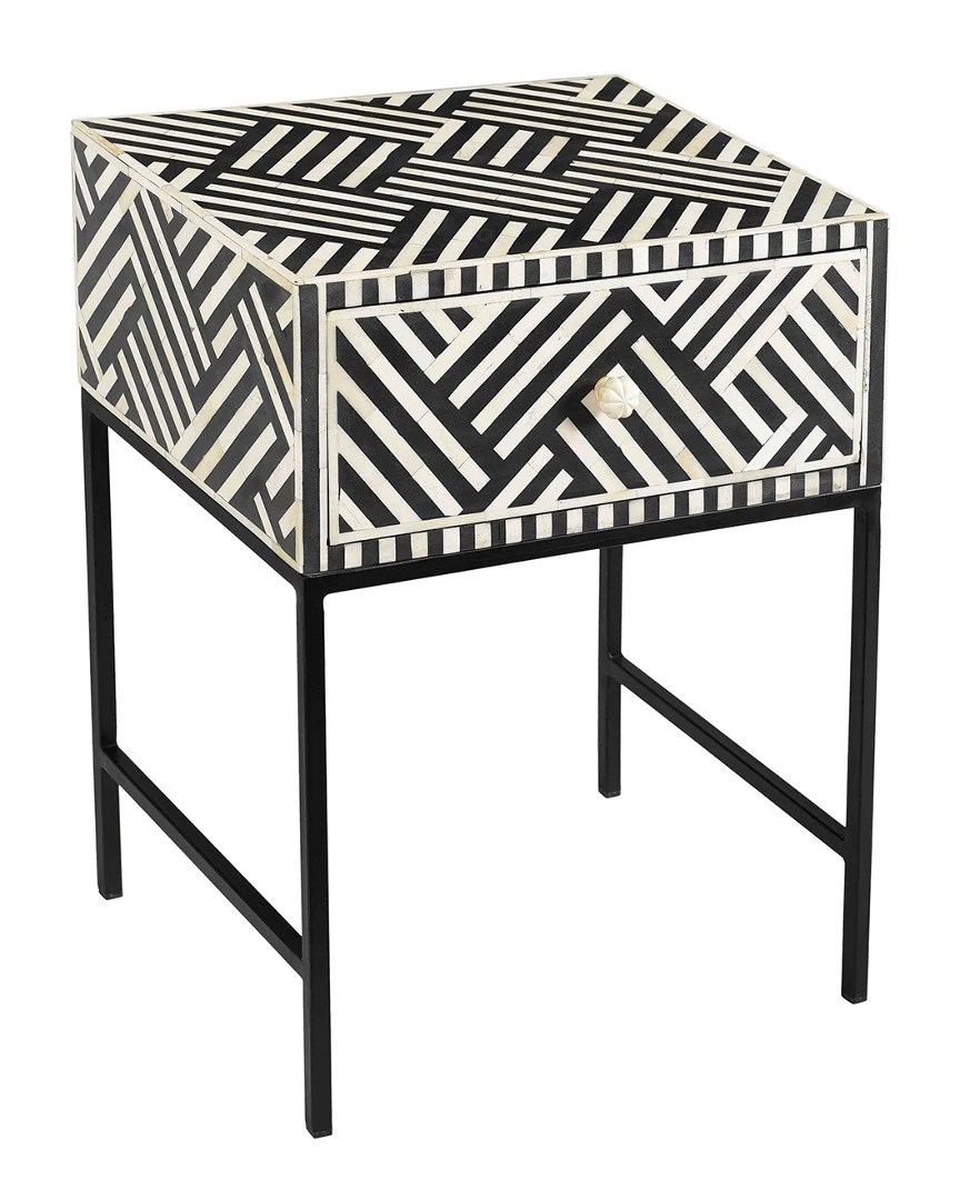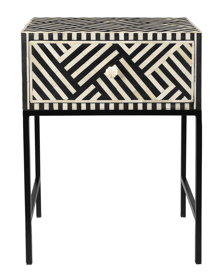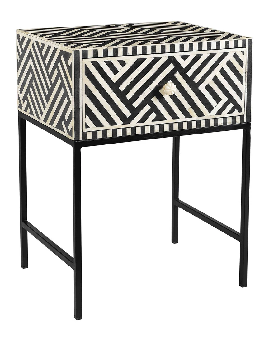 - Design details: Handcrafted bone-inlay mosaics give this otherwise simple occasional table an undeniable sense of luxury. Available in two color options to fit your decor needs; Handmade by master furniture artisans; Drawer dimensions: 16.3″W x 12.5″D x 6.2″H; Slight variations are to be expected – Each item is unique; Genuine bone inlay; Available in two color options