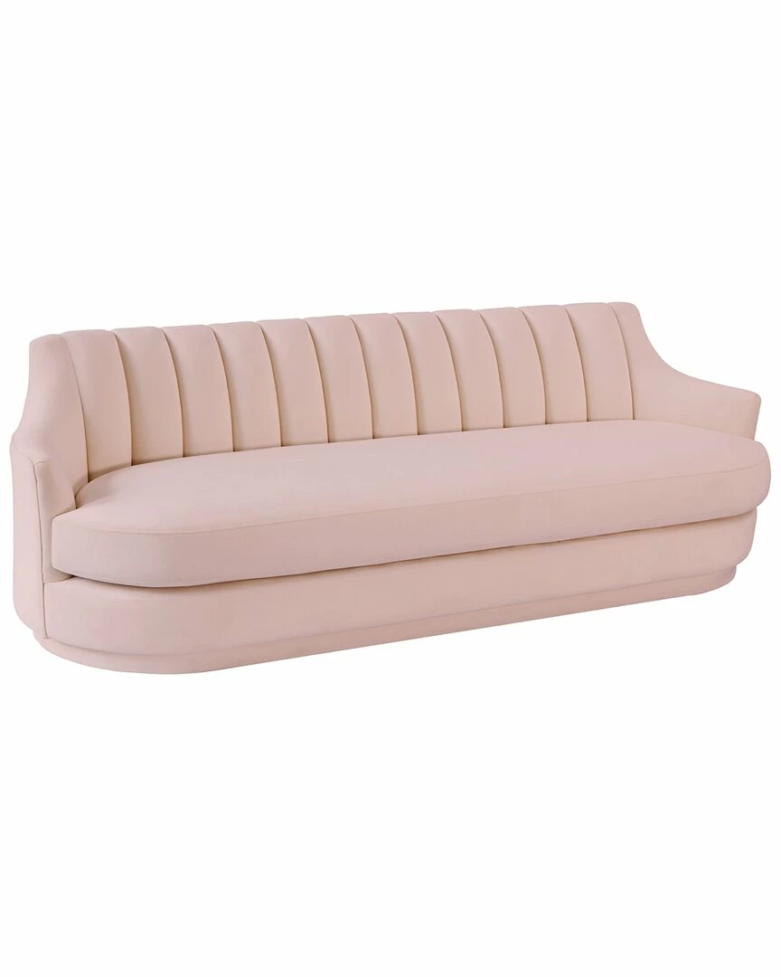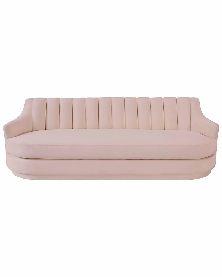 - We invite you to fall in love with this beautiful and stately sofa. Upholstered in luxurious velvet and featuring kiln-dried pine contruction with a plush foam fill, the Peyton sofa will envelope you in comfort and style. Its soft color options make it a dreamy addition to any space.