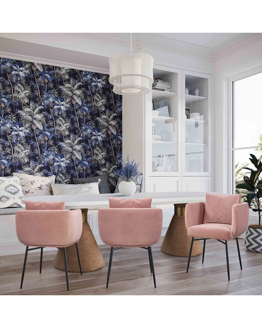 - Design details: Coastal elements blend swimmingly with the modern silhouette of the Rishi Dining Table. Available in two size and color options, its acacia top and textured rope base bring summer vibes to your home all year long.