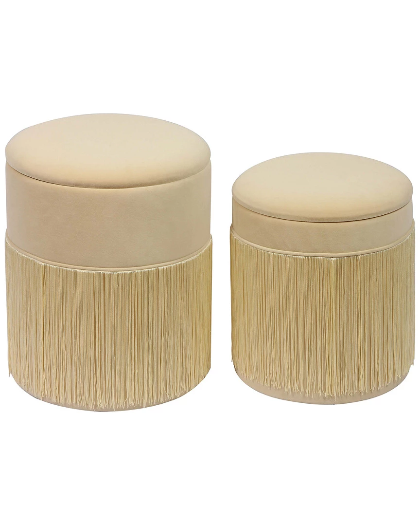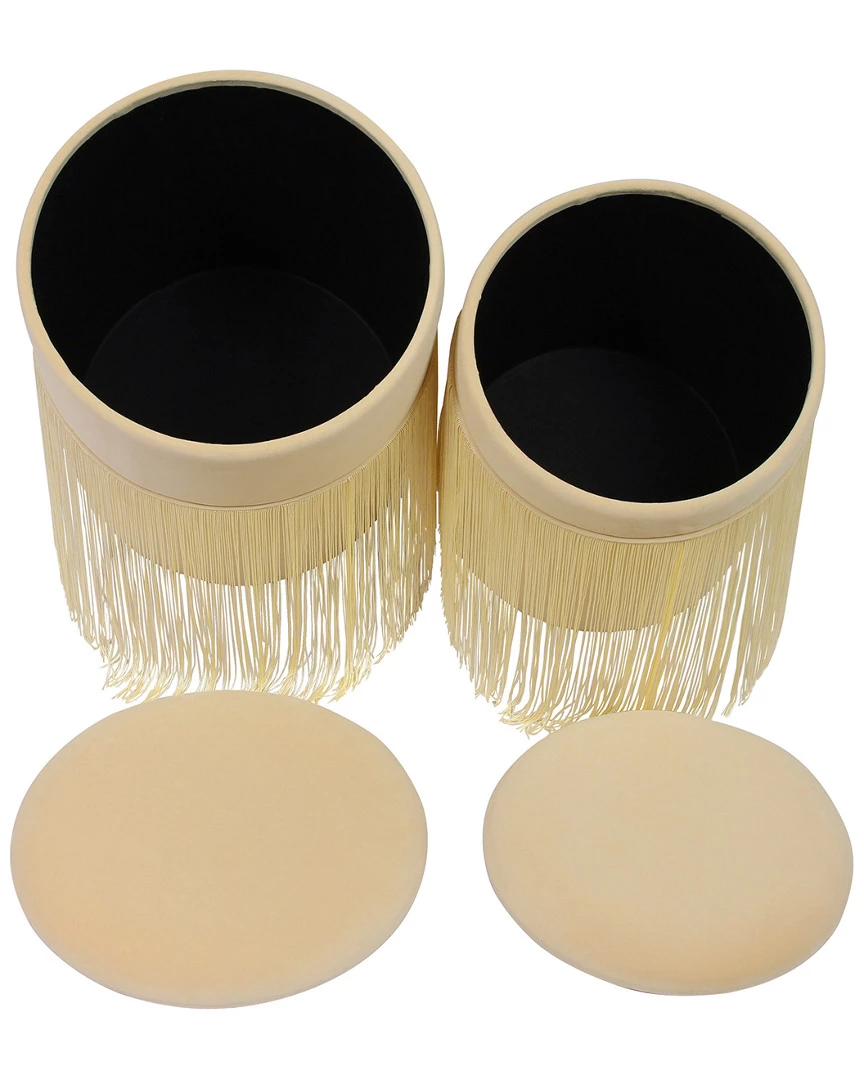 TOV Set Of 2 Tassel Cream Storage Ottomans Home Ottomans & Poufs