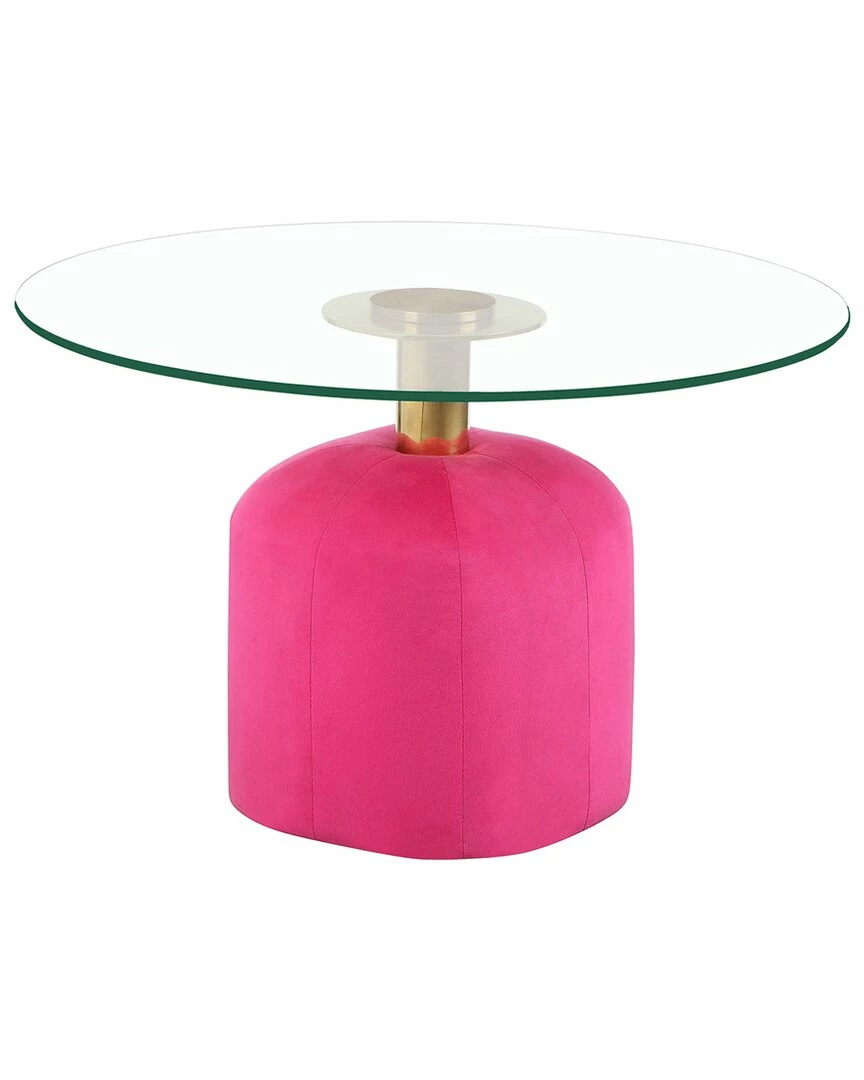- The Suki table is a whimsical piece that will undoubtedly liven up any space! This coffee table features a glass tabletop that rests on a charming upholstered pedestal base with gold stainless steel support.