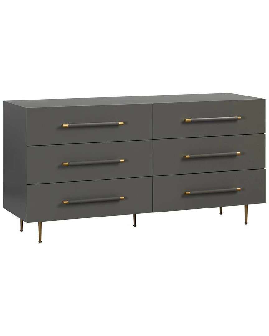 - Simple yet brimming with understated elegance, the Trident dresser offers modern appeal and stylish functionality. Featuring plenty of storage space for your essentials, soft-close drawers and brass accents.
